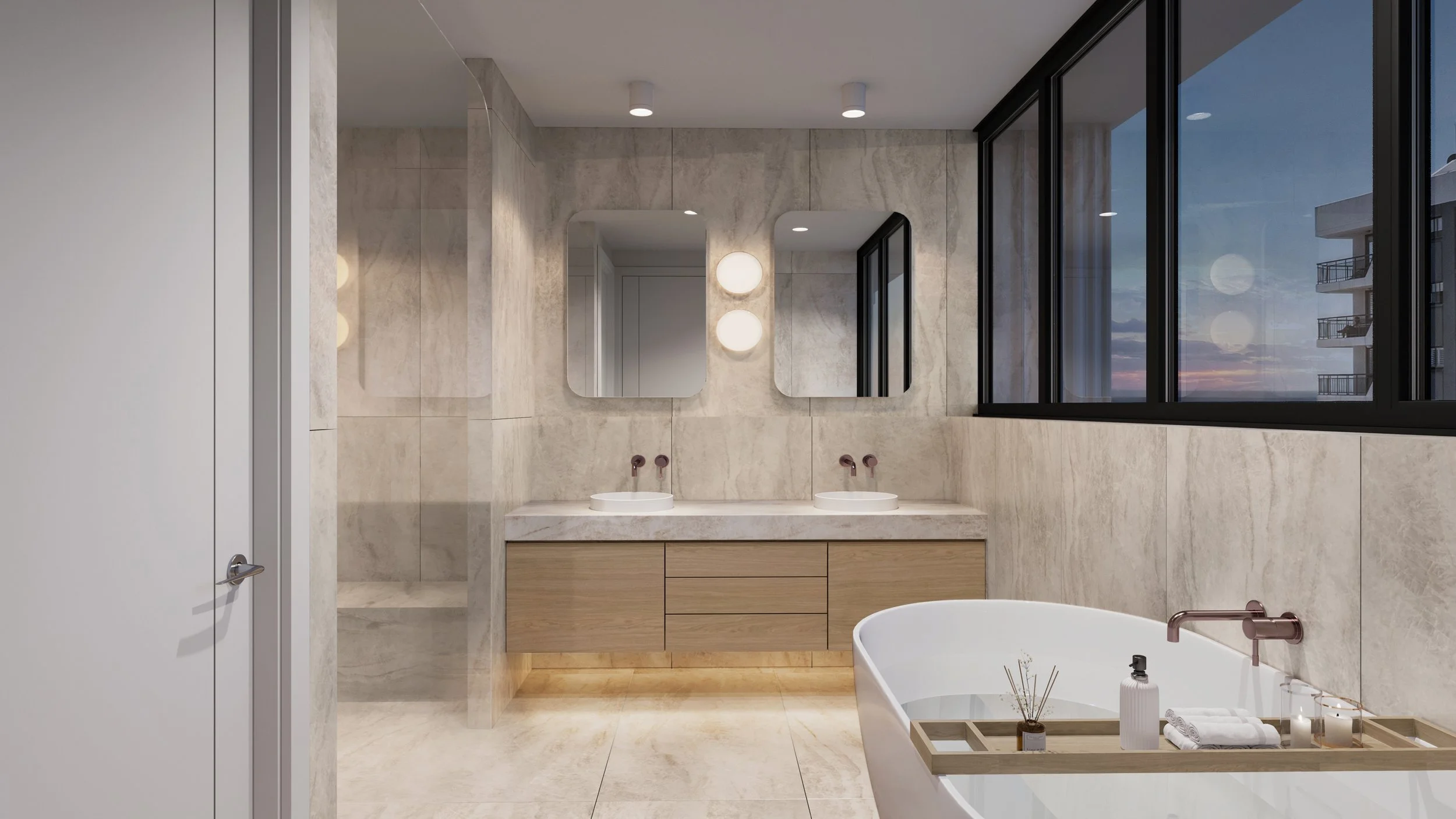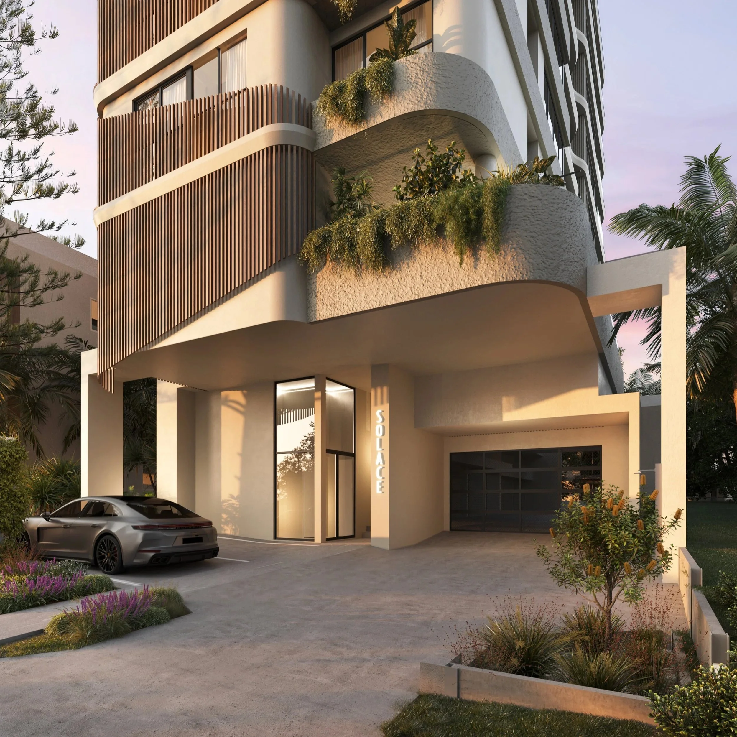 SOLACE Rainbow Bay captures the essence of seaside serenity in one of the Gold Coast's most coveted enclaves. This boutique collection of eight refined residences brings together timeless architecture and effortless coastal living, mere steps from the soft white sand. From the moment you arrive, there's an unmistakable sense of calm. Sunlight spills through floor-to-ceiling glazed doors, ocean breezes sweep across expansive balconies, and interiors blur the lines between inside and out. A refined palette harmonises texture and tone with the warmth of engineered European Oak flooring, the cool elegance of natural stone finishes, and the soft embrace of plush wool loop pile carpet underfoot.